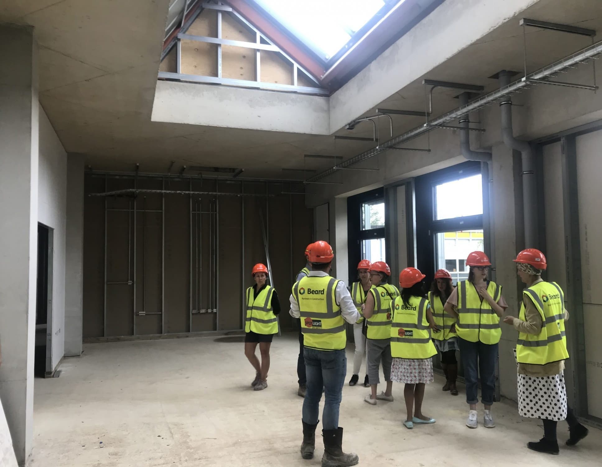 During the tour, staff were particularly impressed with the natural light provided by the floor-length windows in the art rooms and with the striking geometric shapes in the atrium made by the light wells from the first floor. They can’t wait to see the project develop further over the coming months and see the input of students into the landscaping and interior design.